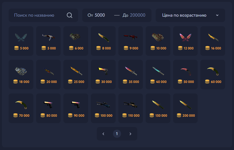 - На сайте также есть магазин предметов, где пользователи могут купить скины из CS2 за монеты, являющиеся местной валютой. Все купленные скины можно вывести на аккаунт Steam.