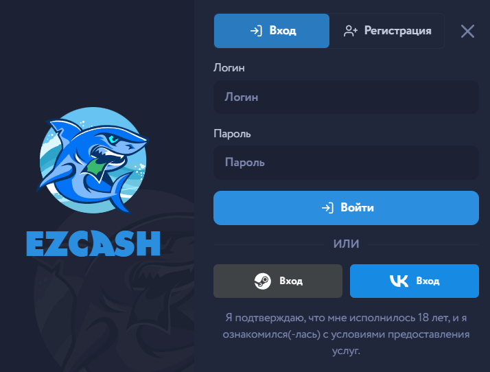 Процесс регистрации на EZCash прост и доступен через VK ID, Steam или с помощью Email. Регистрация интуитивно понятна даже новичкам.