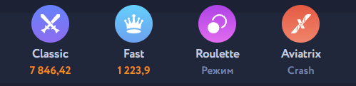 - Classic и Fast — два режима игры, где шанс победы зависит от суммы ставки.